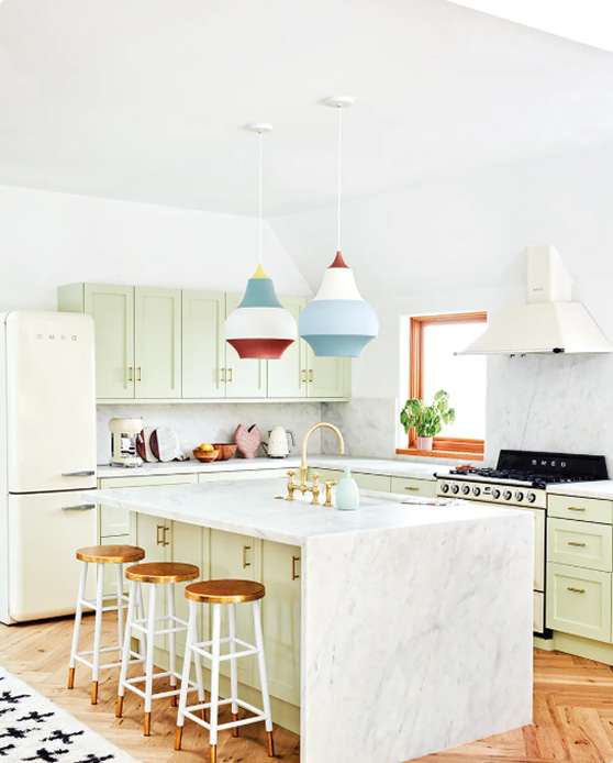 Painted cabinet finishes are loved for their clean, timeless look and wide color range. Whether used throughout the kitchen or as an accent, our full-coverage enamel paints offer smooth, durable, and richly colored results.